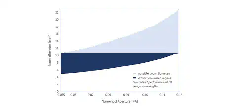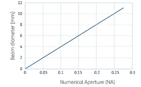 由a|AspheriColl产生的准直输出光束的直径取决于来自激光源的光纤的NA。这是波长的函数。