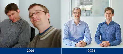 Dnes jsou stále mladí – jen o něco vyzrálejší 😉: výkonný ředitel Sven Kiontke a technický ředitel Alexander Zschäbitz v roce 2001 a dnes.