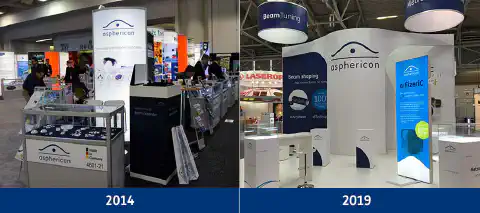 Růst firmy se odrazil i v její prezentaci na mezinárodních veletrzích. Zatímco zpočátku byl stánek asphericonu například na Photonics West v San Francisku jen jednoduchou vitrínou, dnes se firma prezentuje jako etablovaný podnik s vlastními designově propracovanými expozicemi a ukázkami produktů.