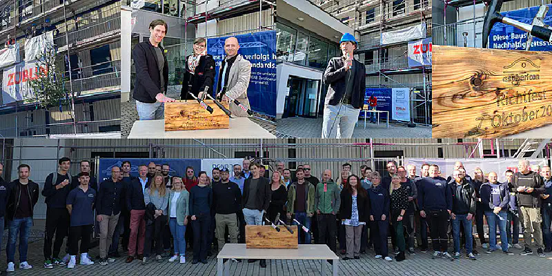 Jena, říjen 2022: Dne 7. října oslavila společnost asphericon, lídr v oblasti asférických optických systémů, slavnost vztyčení glajchy své nové udržitelné dřevěno-hybridní budovy v lokalitě Jena. Po méně než šesti měsících výstavby mohlo dojít k oslavě dosažení hrubé stavby a slavnostnímu vztyčení glajchy. Mezi hosty byli zaměstnanci společnosti asphericon GmbH, stavební tým společnosti Züblin, architekti ze Schüler & Reddersen GmbH, další externí plánovací týmy a další hosté.