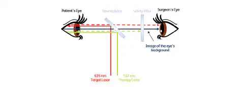 Ochranné filtry v oftalmologických přístrojích umožňují díky své vysoké optické hustotě bezpečnou práci s laserem. Pouze světlo, které je neškodné pro oči vyšetřujícího, jim umožňuje projít a blokuje průchod laserových paprsků (viz obrázek 1). Vysoký stupeň prostupu laserových ochranných filtrů zároveň zajišťuje, že lze vytvořit obraz ošetřované oblasti, např. v zadní části oka.