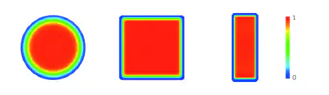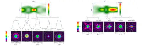 Vysoký výkon a|TopHat Tune je zvláště patrný, pokud jde o rovnoměrnost paprsku. Na obrázku je znázorněno simulované rozložení intenzity a|TopHat Tune Circle, Square a Rectangle při 780 nm při použití zaostřovací čočky s ohniskovou vzdáleností 75 mm. Vyznačují se dokonale rovnoměrným rozložením intenzity.