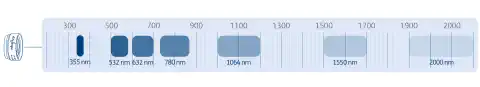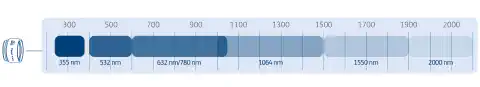 - Optimalizováno pro vlnové délky 266–2100 nm