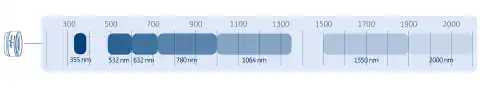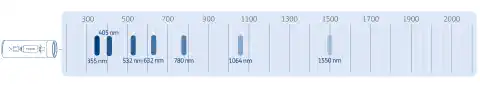 Pokrytý rozsah vlnových délek a|TopShape pro konstrukční vlnové délky [nm] 355, 632 a 1064 a a|TopShape LD a LDX pro konstrukční vlnové délky [nm] 355, 405, 532, 632, 780, 1064 a 1550.