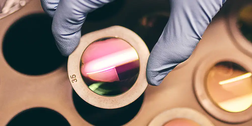 Before the optical coating process starts, the lenses of course have to be thoroughly cleaned manually or by ultrasonic washing to remove impurities, such as dust, and to prevent functional impairment. The properties of the applied layer can also be specifically modified by means of a heat treatment, so-called tempering. This last refinement is achieved by heating the lenses, which removes the water from applied layers. The advantage of this additional process is the further optimization of the coating of optics. However, only certain coating materials can be tempered.