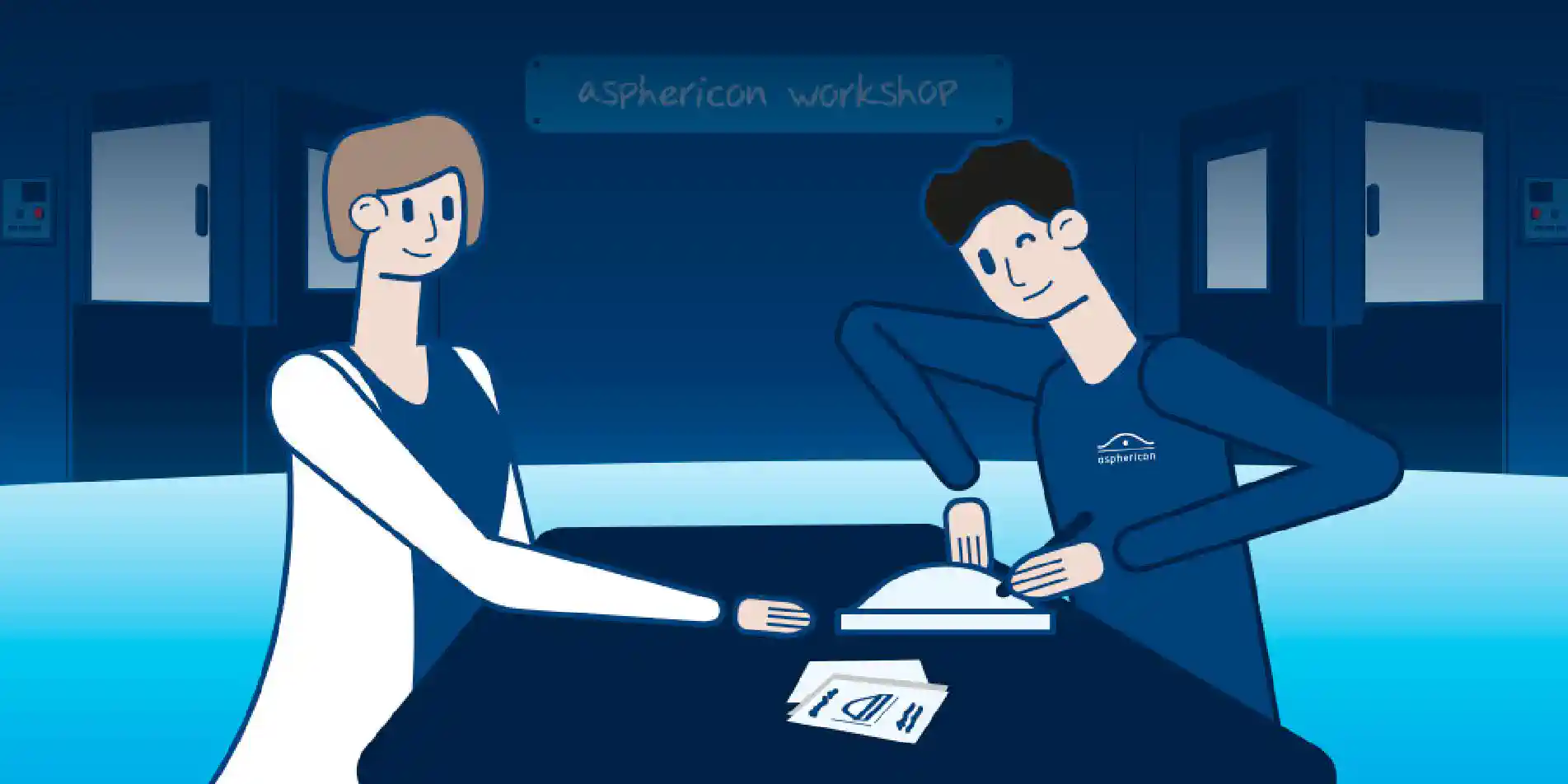 To enable initial training to proceed smoothly, new colleagues are supervised by a team of experts in the in-house training workshop. They undergo theoretical and practical training, during which all operations are discussed and carried out jointly. In the next phase, induction takes place in the department they’ve been assigned to. They learn the specific tasks they’ll need to carry out on a daily basis. asphericon’s employees can also learn about other areas by taking additional further training.