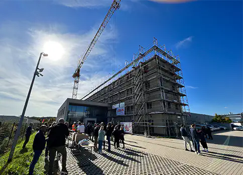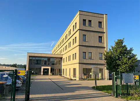 The new building at the Jena site, which was completed in September 2023, is also part of asphericon’s sustainable strategy. The first sustainable timber construction in the optics industry has been created here.