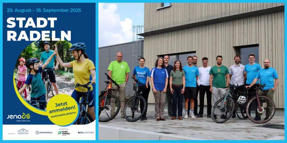 STADTRADELN is a nationwide initiative organized by the Klima-Bündnis e.V. encouraging people to use bicycles for as many everyday trips as possible. In Jena, the campaign is organized by the city of Jena with the support of the Free State of Thuringia, the Working Group for Bicycle-Friendly Communities in Thuringia (AGFK), ADFC Thuringia, and asphericon GmbH.