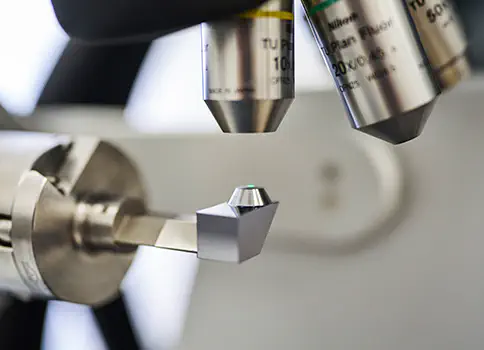 Ausgefallene Materialien (z.B. Keramik) und umfangreiche TestszenarienDie hochpräzise CNC-Bearbeitung setzt komplexe Geometrien exakt um. Mittels MRF-Politur (Magnetorheologisches Finishing) werden höchste Genauigkeiten erreicht. Modernste Messtechnik (inklusive 3D-Verfahren) sichert eine exakte Überprüfung aller Parameter.